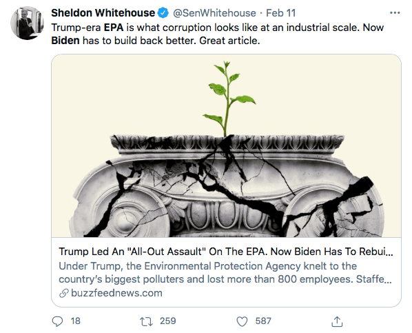 Every American realizes, or should realize, Trump made every effort to destroy the environment during his infamous term as president. From Scott Pruitt, the first Administrator of the EPA under Trump, who called withdrawing from the Paris Climate Accord, “courageous,” to Andrew Wheeler, second Administrator of the EPA and former coal lobbyist, both wrought so much damage to the environment that the majority of new Administrator Michael Regan’s job will be cleaning up the damage done by the previous administration. In short, the Biden Administration’s priorities will be addressing massive pollution issues, working on climate change, and handling environmental justice issues.