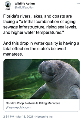 - Consider your own carbon footprint and how this adds to climate change, which affects Florida and wherever anyone lives;