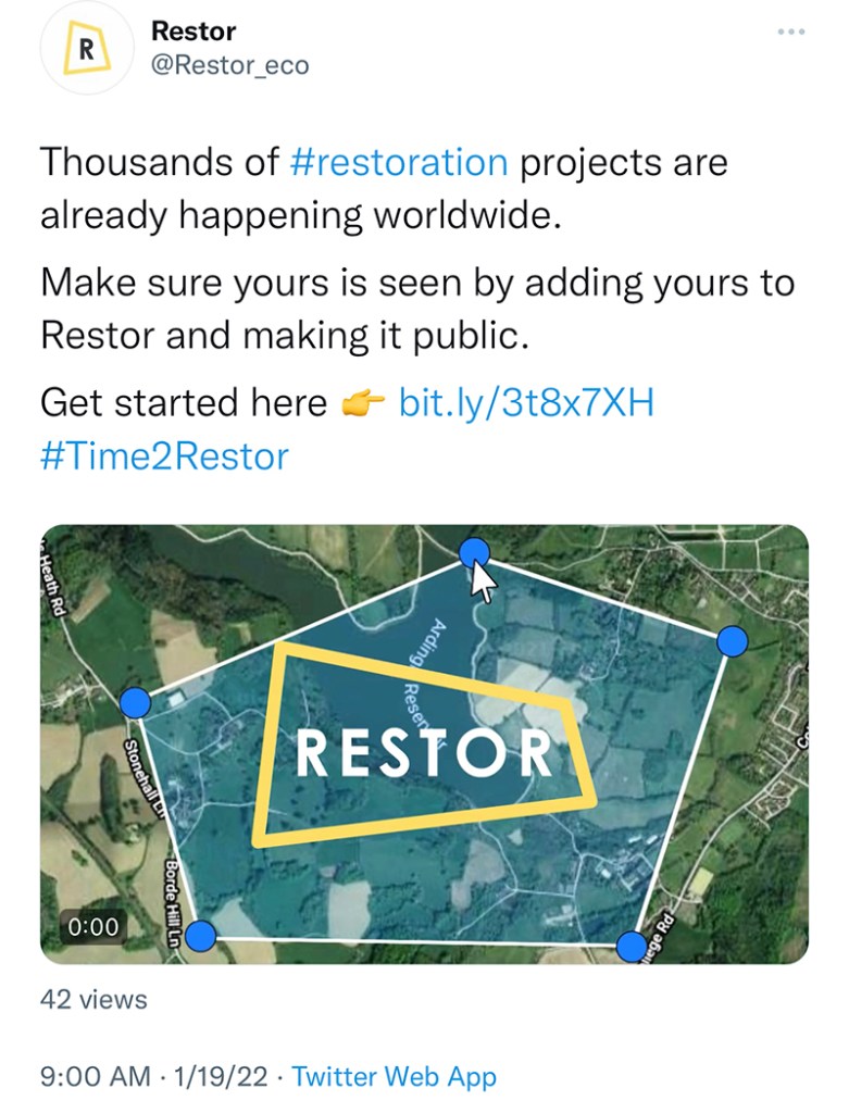 Through this very powerful, necessary and brilliant Countdown TED Talk, Crowther bridged the gaps, mended the fences, and united all of us who are focused on rewilding and nature-based solutions in our global climate emergency. He announced the creation of his new nonprofit Restor founded by Crowther Lab, which is a new open data platform network equipped with a machine learning model that is powered by Google Earth Engine and Google Cloud for the purpose of helping “anyone be part of ecological restoration.”