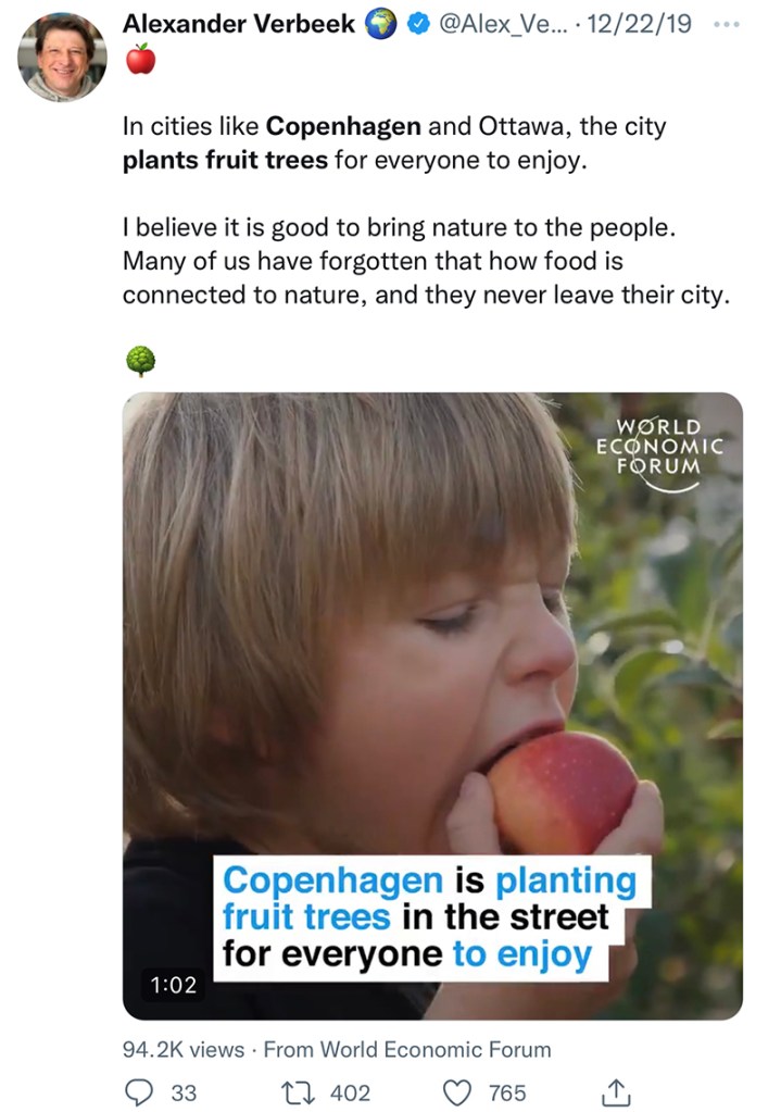 - Copenhagen decided to plant fruit trees on city streets since so many residents no longer have gardens.