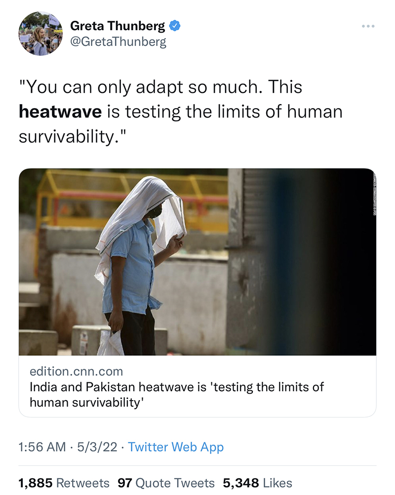 A billion lives are currently threatened by an extreme two-month heatwave smothering India and Pakistan, with temperatures recently reaching as high as 120.2ºF in Jacobabad, Pakistan. A heatwave is defined as a prolonged period of excessive heat with sustained temperatures of 10ºF above normal. According to Inside Climate News, in 2021, Amnesty International deemed Jacobabad “unlivable for humans” due to the heat island effect and lack of greenery and water in the city.