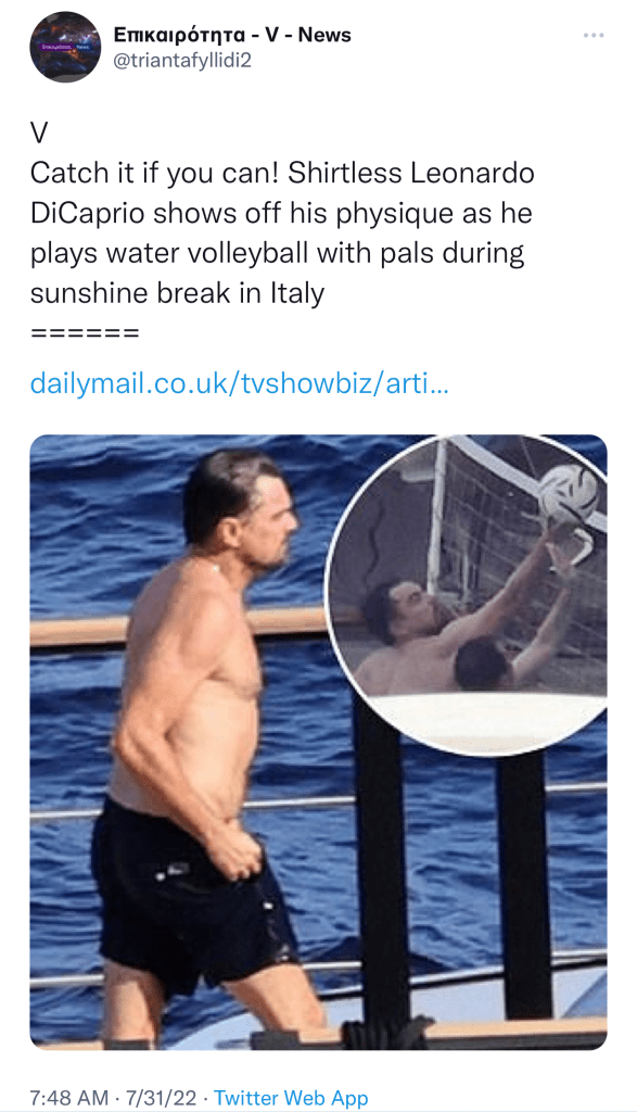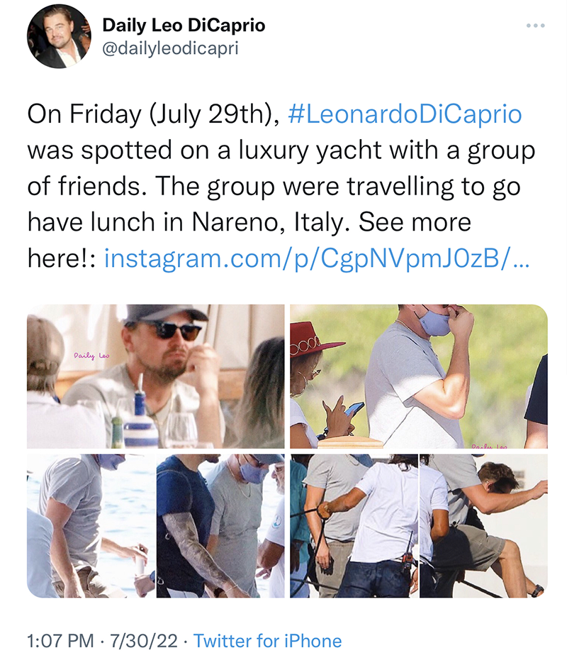 DiCaprio Tweet with Its 1.3M views, July 26, 2022