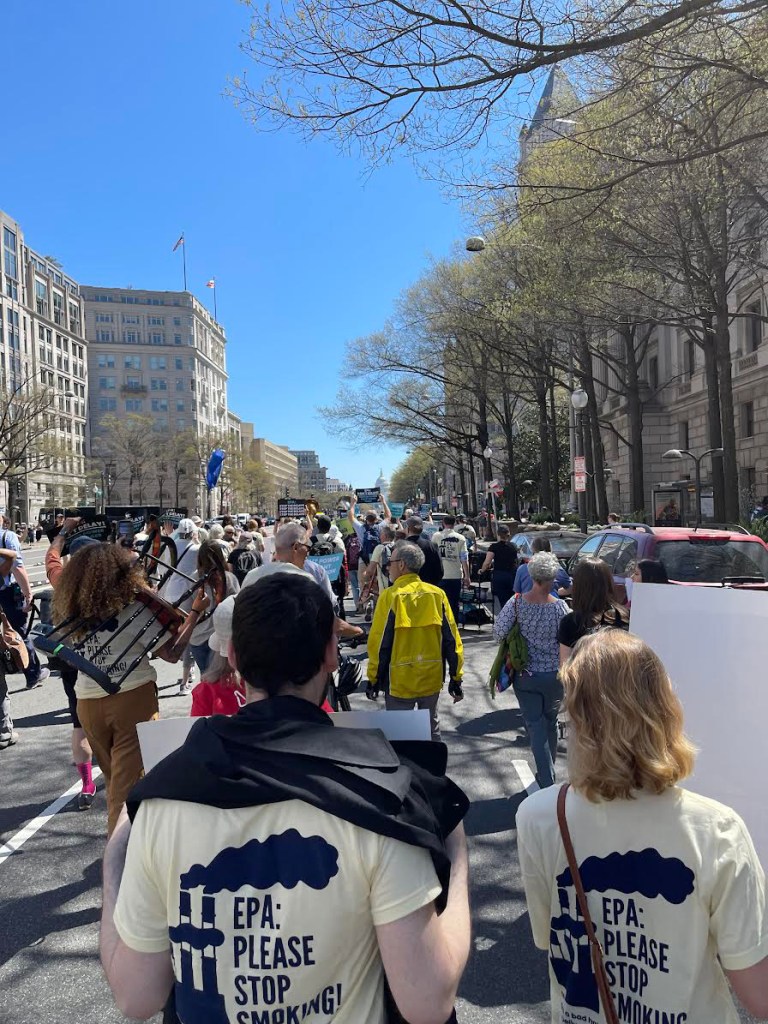 “EPA PLEASE STOP SMOKING,” and, “EPA has the bad habit of delaying pollution rules. Deliver new power plant rules now,” were the words splashed across the yellow tee shirts as the group determinedly set off for 1200 Pennsylvania Ave.