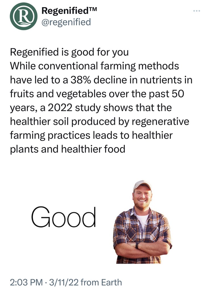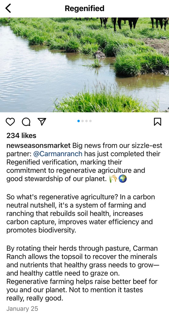 So, the next time you’re in Whole Foods, be sure to look for the Regenified label. If you don’t see any products, stop at Customer Service and ask. Remember, choosing Regenified instead of conventional is a daily decision that has significant long term positive outcomes for both personal and planetary health.